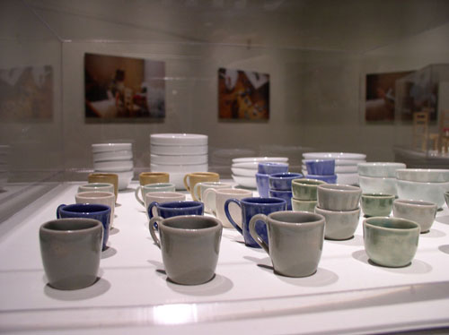 Since the mid 1990's, witty conceptual work of Shinobu Akimoto has questioned whether 'art'-making is simply part of the experience of living, or is somehow a distinct, even rarefied human activity. Akimoto is best known for installations rightly called 'projects', such as her IKEA Living Project Series (1999-2001), where she pragmatically replicated mass-produced furniture and lifestyle accessories by hand, or BACKYARD (2000-02), a video installation with looped footage of flora and fauna in her parents' backyard, " overlapping the mundane existence of both the subject matter and the maker of the video". One of her new installations, Better Living (2004-05) is composed primarily of photographs featuring a pet bird, cat and rabbit caught in the act of 'shopping' in a miniaturized plant nursery, ceramic store, and furniture shop. The small scale suits both the proportions of the animals and showcases Akimoto's hand-made facsimiles of impractically tiny ceramic ware, potted plants, or wooden furniture found in Japanese 'dollar' stores. For the Photo-Litho Project the artist used lithography to manually reproduce real advertisements from flyers and catalogues that list socks, Burberry tartan coats, and other popular, human-like 'accessories' for pets. Inherent in all of these ventures are their open-ended interpretability and mix of the ridiculous and serious in all our activities.